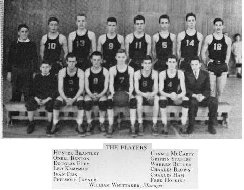LED by Captain Hunter Brantley, the Varsity Basketball squad completed one of its most successful campaigns in recent years. .Although the “basketeers” got off to a slow start against the (Gridiron Club, they soon picked up momentum and crushed Cradock in the next contest, 52-11. Two more close victories followed 'til the Presidents were swamped by Newport News Shipbuilders, 43-19. As the Shipbuilders eventually won the State Championship, this was not considered humiliating.