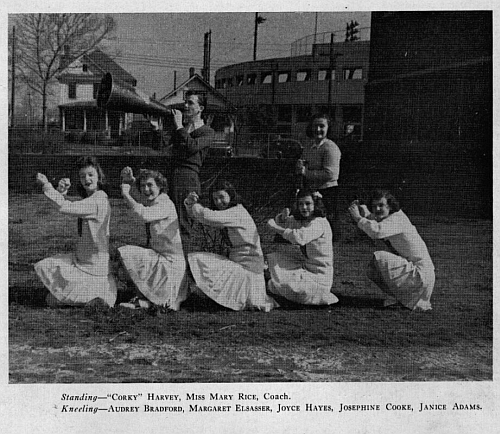 Standing up—“Corky" Harvey, Miss Mary Rice, Coach.