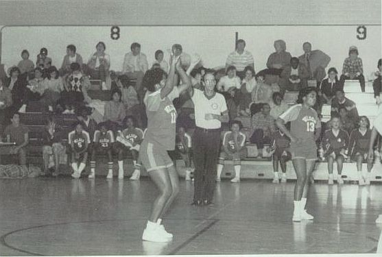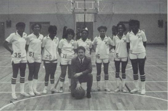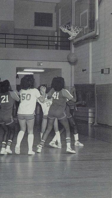 "Angela Wingate, Robin Blunt and Adrienne Mitchell are the key players on the team." says Coach Frey. Angela Wingate is a 5'9" senior who averages 16 points and 7 rebounds a game. Robin Blunt, a 5'7" junior who averages 12 points a game. Adrienne Mitchell, a 5'11" senior seemed very promising this year." states Coach Frey.