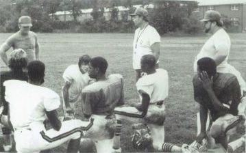 Standing: Coach Price, John Ransom, Barry High, Kevin Eason, Terrence Johnson, and Steve Brown.