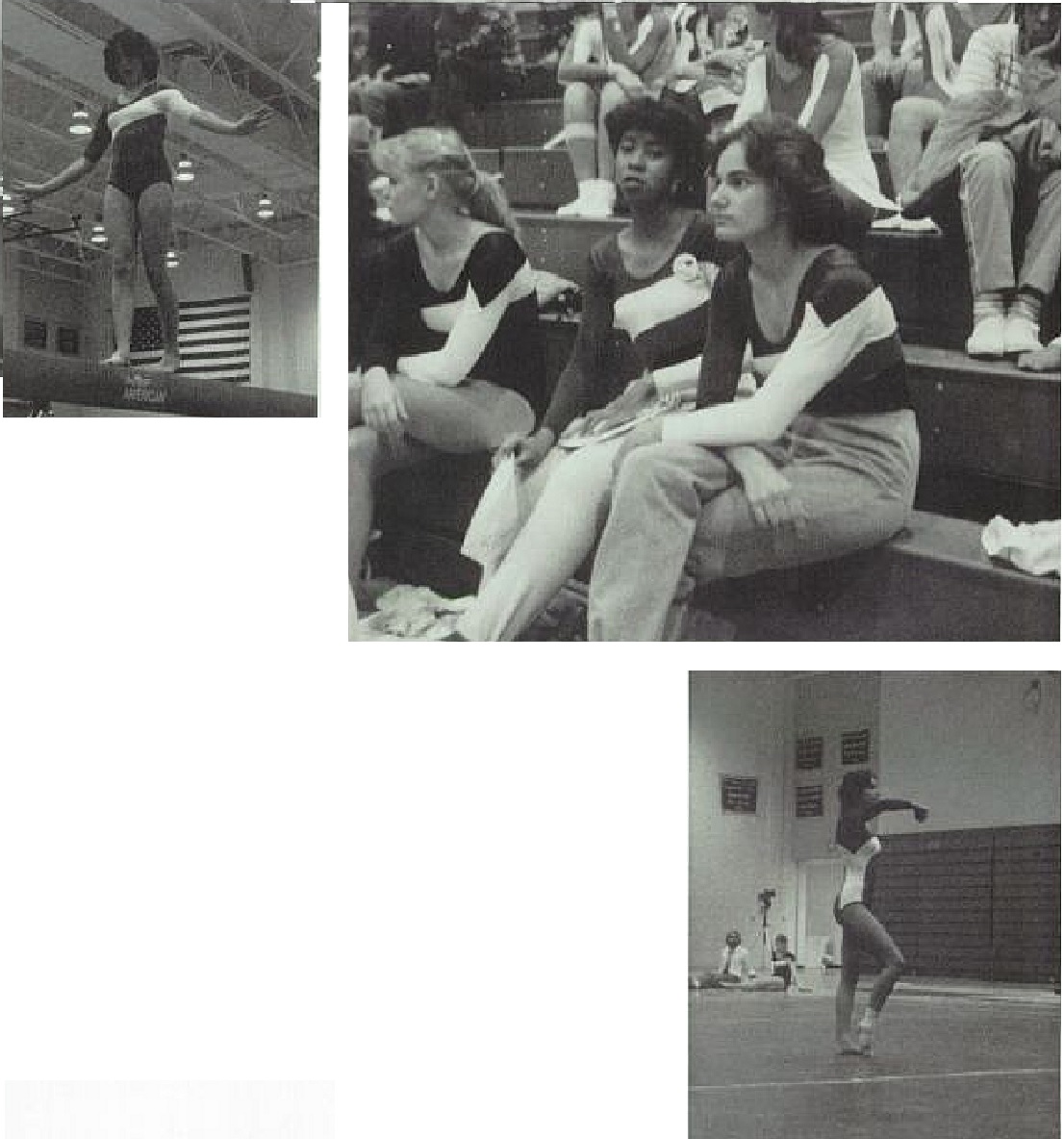 Although the season ended without the gymnastics team not winning a meet, the individual efforts and sacrifices by its members should not go unnoticed. A mid-season ankle sprain to senior Eve Goldblatt sidelined her for several weeks. The same injury to Shelly Goldfarb eliminated her late in the season and into the district meet. The third senior of the team, Tracy Allen, underwent extensive knee surgery due to an injury she sustained in her first meet of the season. Along with these three seniors the rest of the team consisted of four freshmen, Deannie Griffin, Donna Hedge, Diana Mitchell, and Denise Gilchrist. The bright spot of the season's efforts however, came when Eve Goldblatt placed fourth on the uneven bars at the district meet and therefore, became the olnly Portsmouth gymnast to qualify for the regional meet.