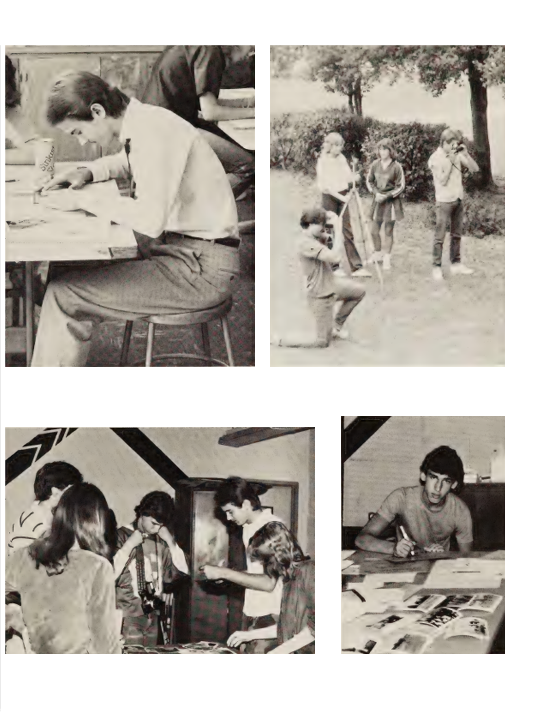 Yearbook staffers search through a pile to find the “perfect” photo.