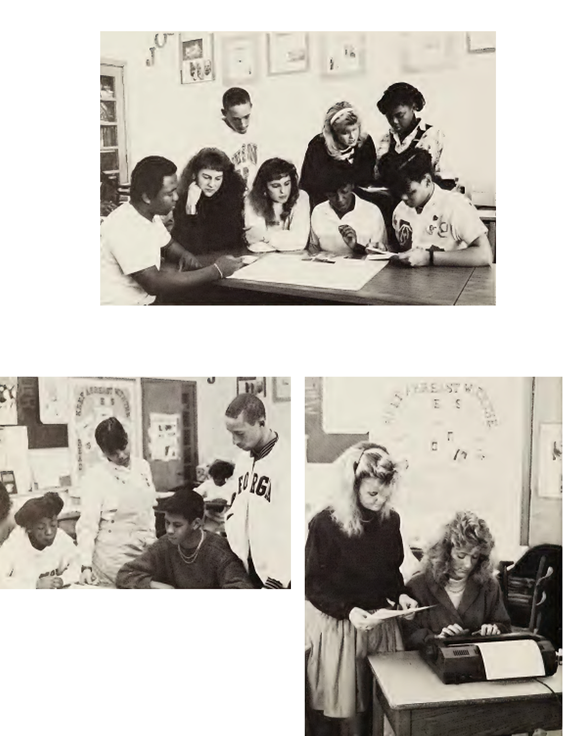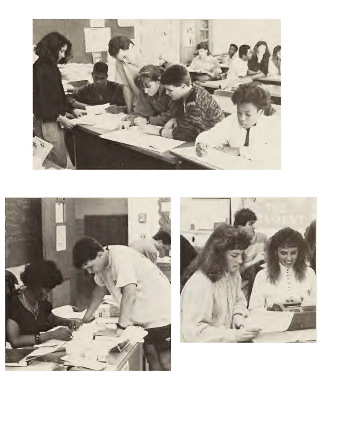 There are a variety of jobs involved in the production of a newspaper from layout decisions (above) to the final typing (right).