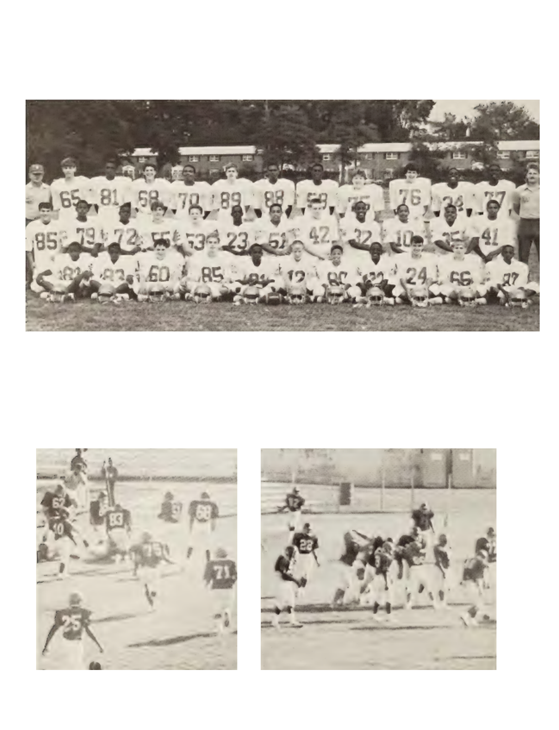 Kneeling: A. Moore, D. Moore, G. Davis, J. Vance, J. Stevenson, T. Brooks, A. Gibbs, K. Cross, C. Beavers, A. Bell, L. Andrews 2nd Row: Manager S. Meyers, E. Stuart, J. Whitefield, S. Siegler, J. Cummings, Deloatch, Boone, J. Saunders, C. Falcon, D. Sparrow, T. Jones, J. Mayberry 3rd Row: Coach Thompson, A. Iven, W. Carter, R. Sharpe, K. Epps, Rotten, W. Blunt, K. Johnson, D. Castle, T. Burkett, D. Clements, J. White, Coach Ladisic
