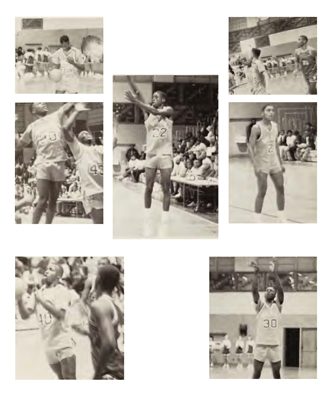 Standing: Coach Harvey, W. Brimage, C. Vinson, C. Gauze, D. Freeman, K. Mitchel, S. Wright, R. Watson, V. Harrington Kneeling: K. Majette, M. Honore, C. James