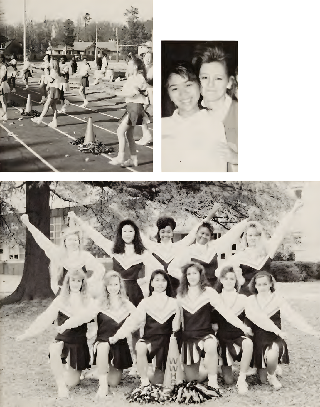 The Junior Varsity Cheerleaders had a very busy year. They attended all Junior Varsity athletic events as well as most of the Varsity events. Members of the J.V. squad are Dorothy Dickman (Co-Captain), Cathy Costello (Co-Captain), Christine Farrell, Chien Hsin Wu, Shamika Hicks, Daphne Riddick, Lisa Jones, Amber Brooks, Reshanna Perrault, Kathryn Thomas, and Meghan Walker.