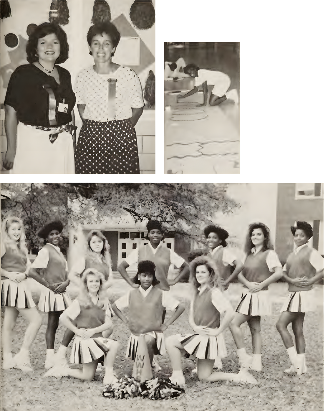 school. They attend the varsity athletic events, including foot-ball, basketball, and wrestling. This year, the Varsity Cheer-leaders placed Third in a competition at Chesapeake Square Mall. The Varsity Cheerleaders are Latitia Elliot (Captain),