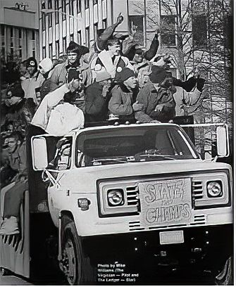 Wilson’s 1989 State Football champs celebrated during a parade through downtown Portsmouth.