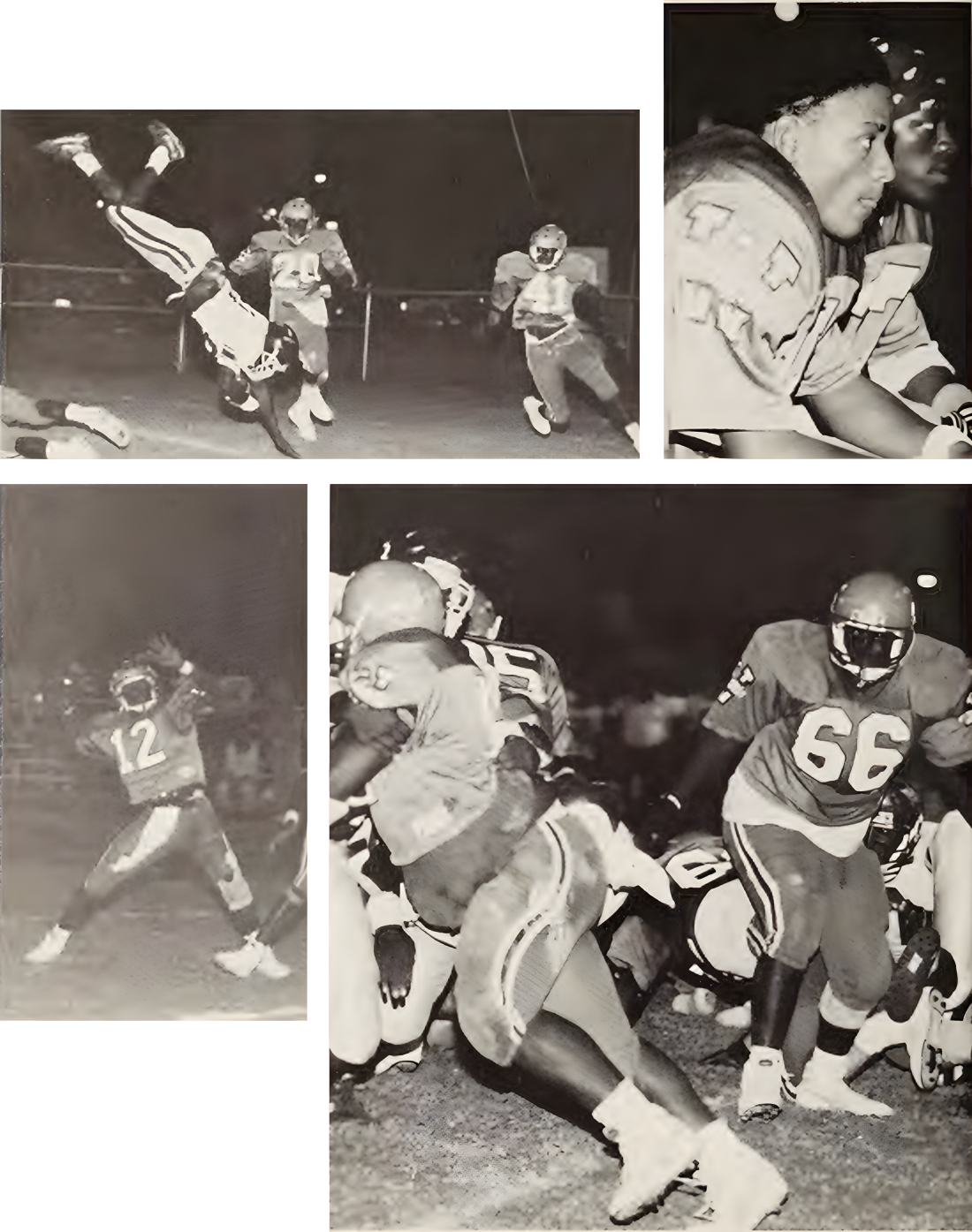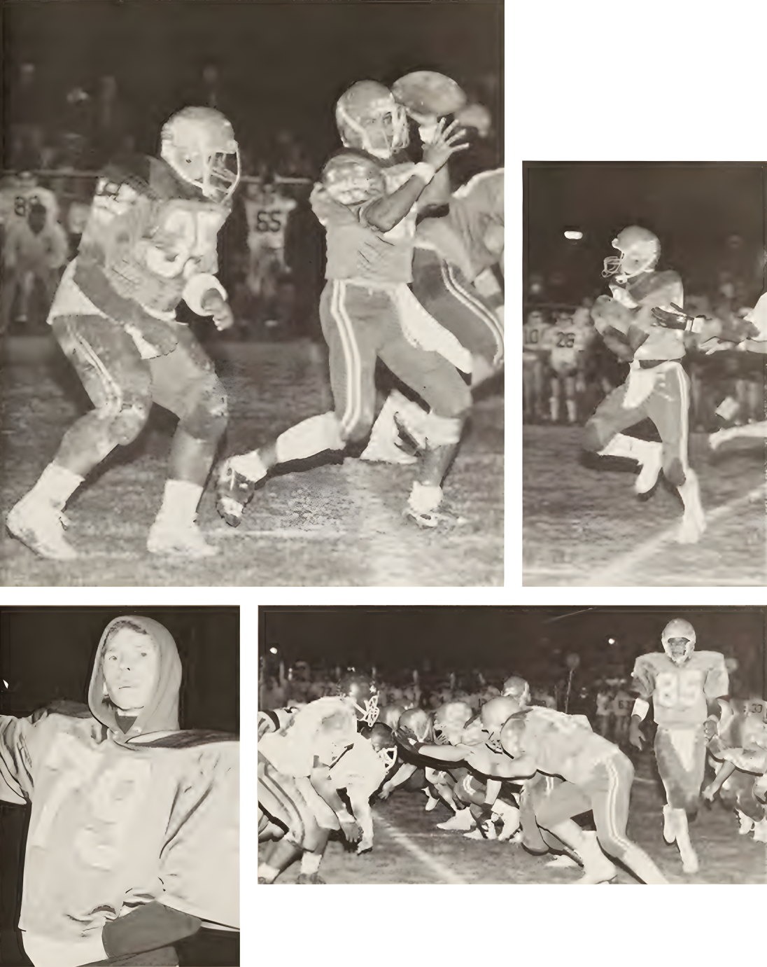 The offensive line goes into action with Kevin Cross beginning a passing play.